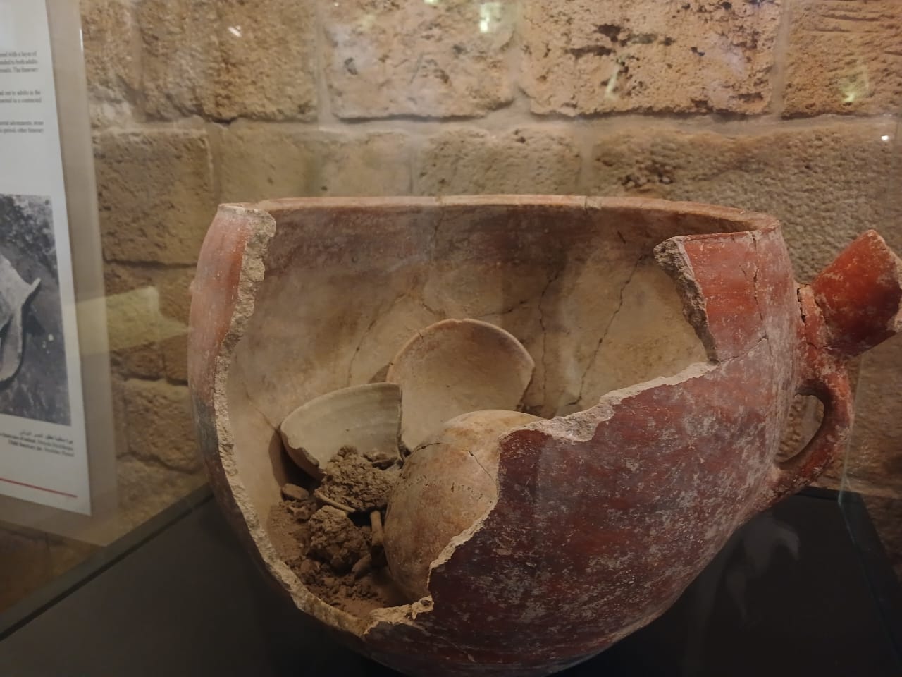 One of the last stops during the trip was a room furnished with ancient Phoenician relics, each encased protectively within glass boxes. I walked past an odd-looking urn in which lay the remains of a Phoenician baby (yep). The guide explained that this method of child-burial, known as amphora burial, was common to their civilization. It held a spiritual significance that historians differ on nowadays, but one explanation is that the round urn was meant to symbolize the safety of a mother’s womb. That, according to pagan Phoenician belief, could provide some sort of protection to the deceased baby in the hereafter. Small offerings, such as amulets and figurines, often accompanied the remains in the urn. He showed us some of these figurines in a separate section of the room.