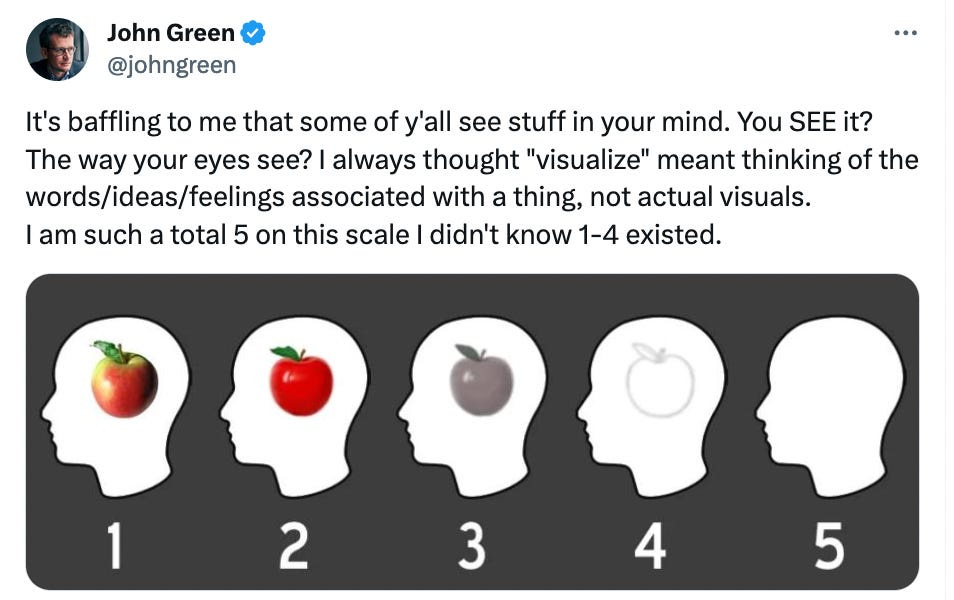 Two years ago, novelist John Green publicly expressed his shock at finding out visualization is an innate skill most people have.